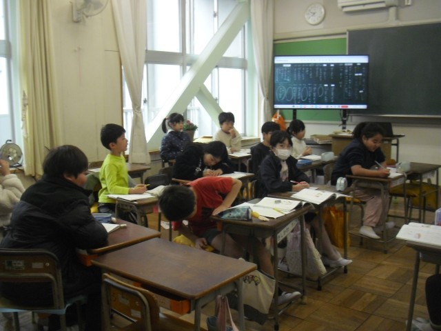 国語の授業です。修飾語について学習しています。主語と述語だけではくわしいことがよく伝わりません。修飾語の必要性を実感しています。