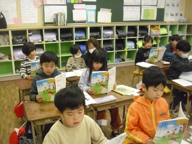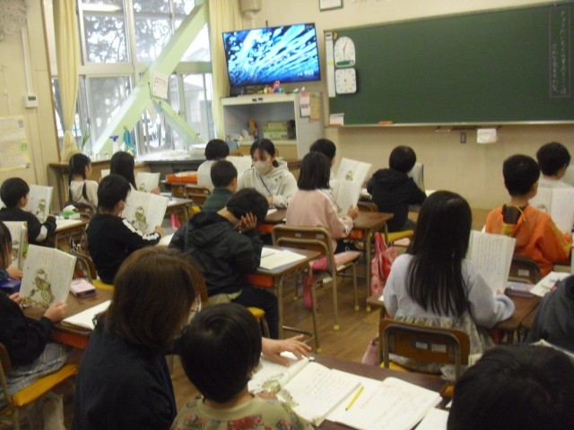 国語の授業です。スイミーの音読をしています。みんな上手になってきました。