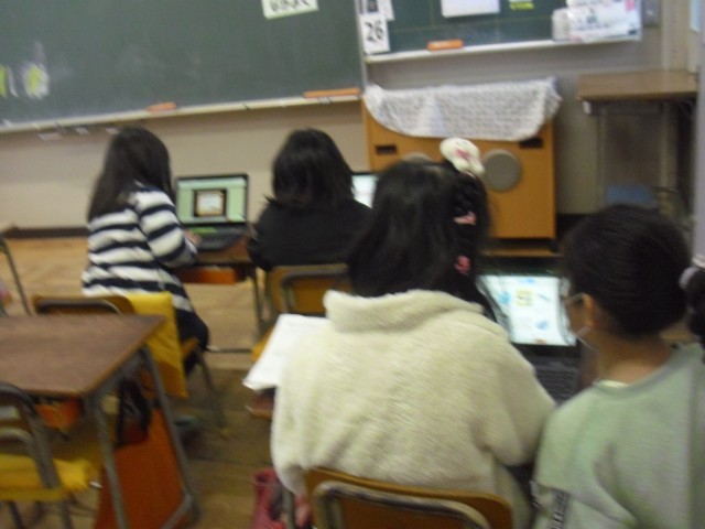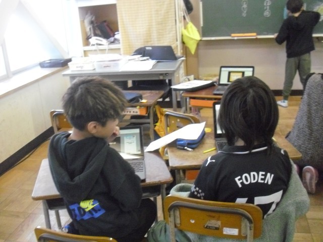 国語の授業です。タイピングの練習をしています。今までかな打ちでしたが、これからはローマ字打ちに挑戦します。