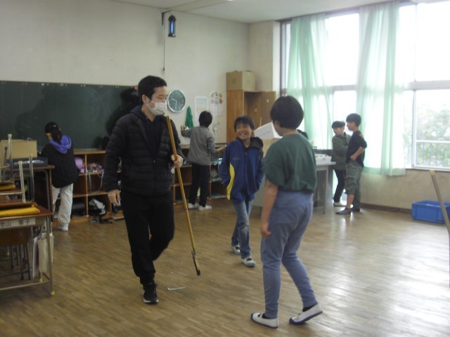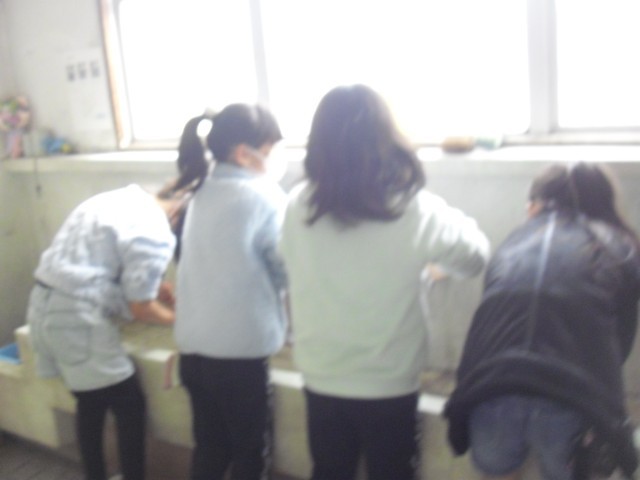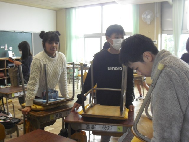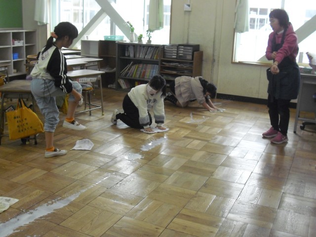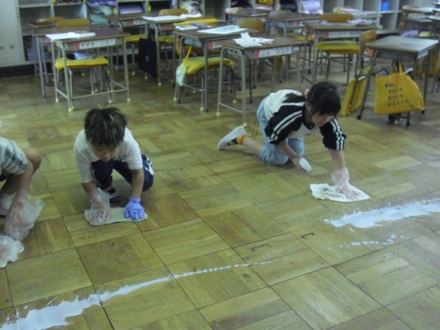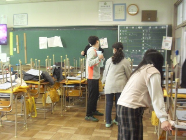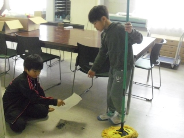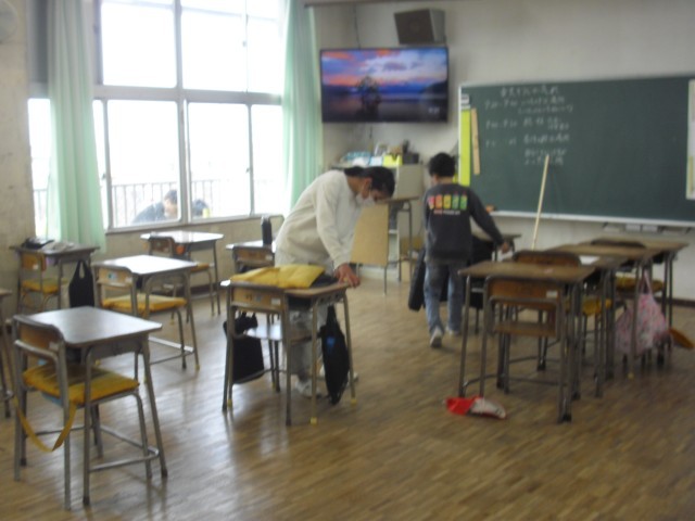 大掃除の様子です。後輩のために一生懸命教室をきれいにしています。