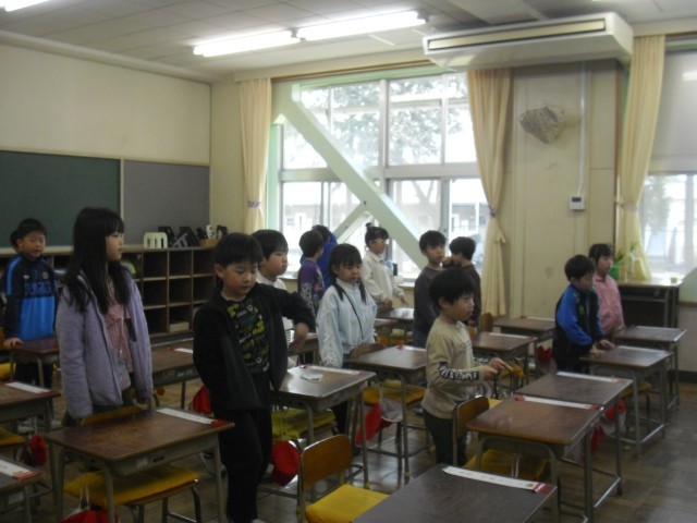 1年生の授業開始の様子です。とても素晴らしい態度です。1年間で本当に成長しました。来年は上級生として新1年生のお手本となってほしいです。