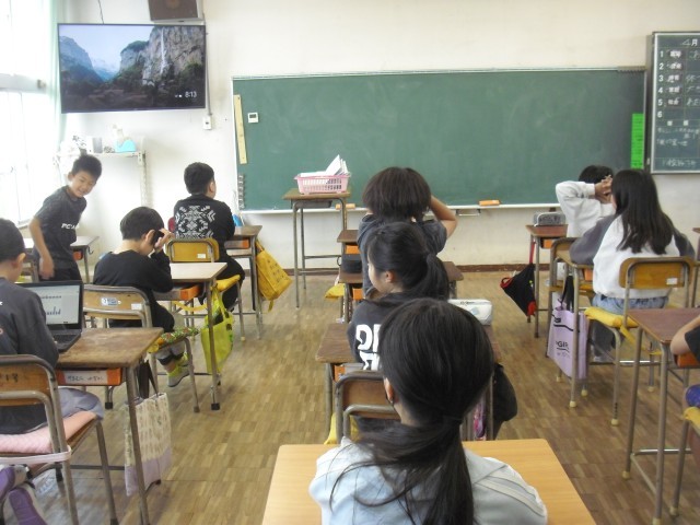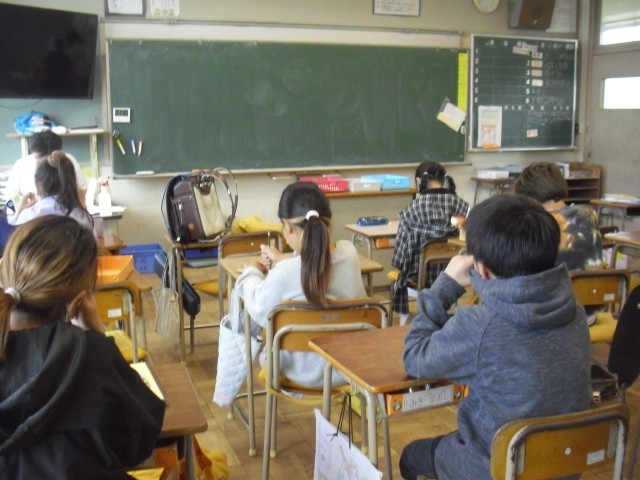 4年生も朝の会が始まる前に身支度を調え、準備万全です。