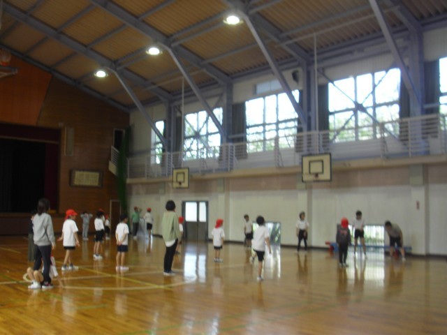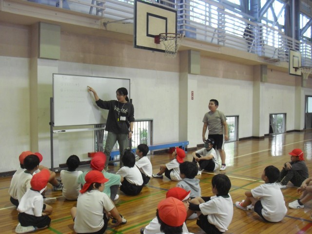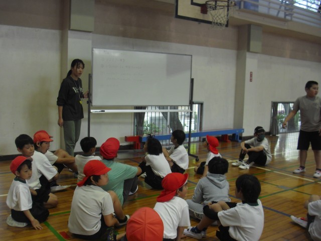 育成の授業です。体育の学習をしています。先生の話をしっかり聴くことができています。大変素晴らしいです。