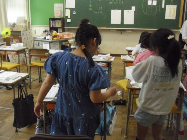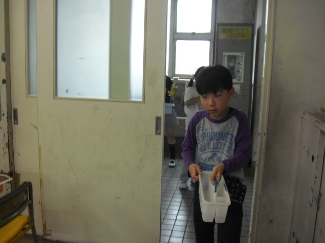 図工の授業です。絵の具の準備をしています。