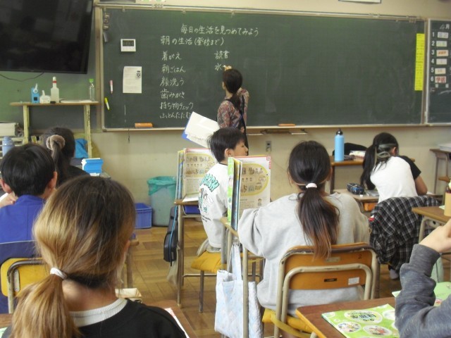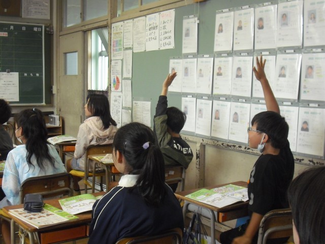 家庭科の授業です。家での仕事について話し合っています。みんなどのような仕事をしているのでしょうか?