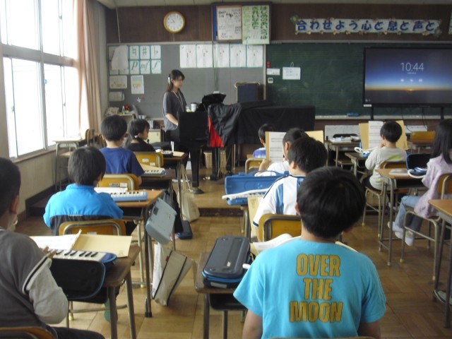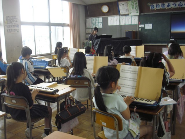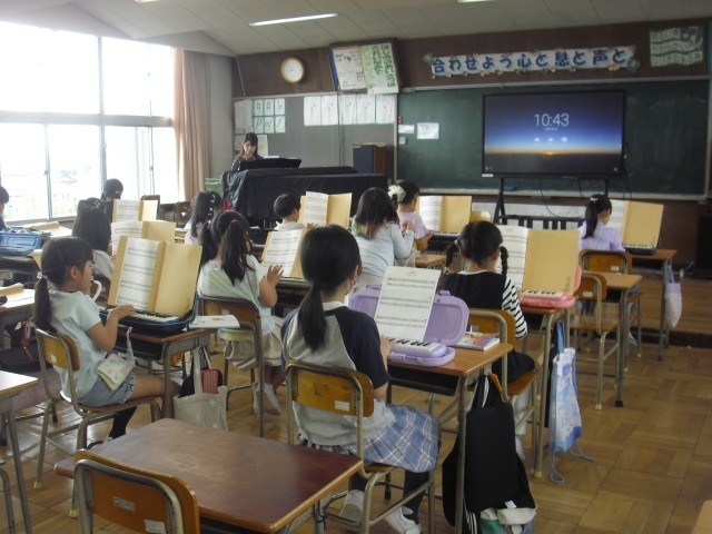 音楽の授業です。鍵盤ハーモニカの練習をしています。