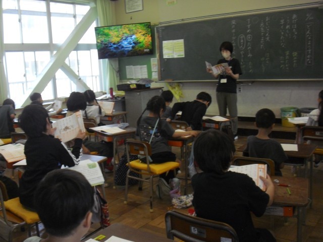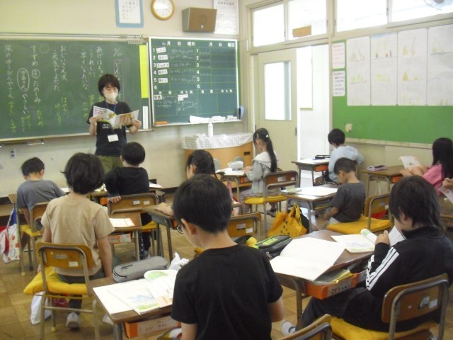 国語の授業です。音読の練習をしています。みんな揃っていてとても上手です。