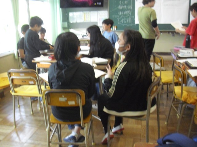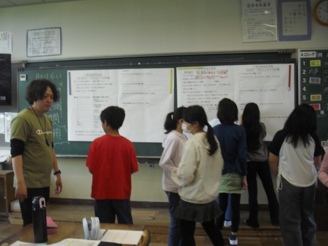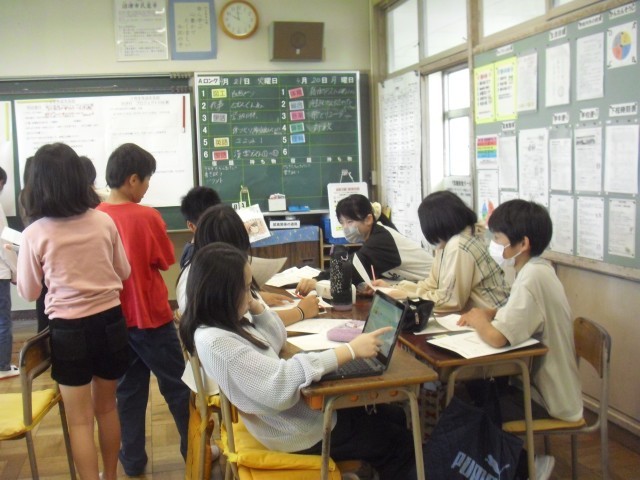 学活の授業です。1年生を迎える会の話し合いをしています。1年生のためによろしくお願いします。