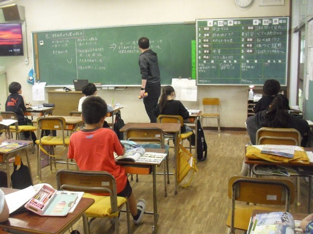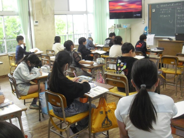 社会科の授業です。焼津港について学習しています。いろいろな魚が焼津港に水揚げされることが分かりました。