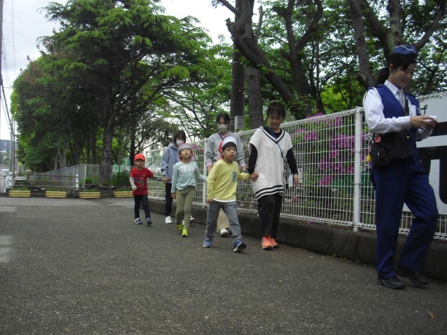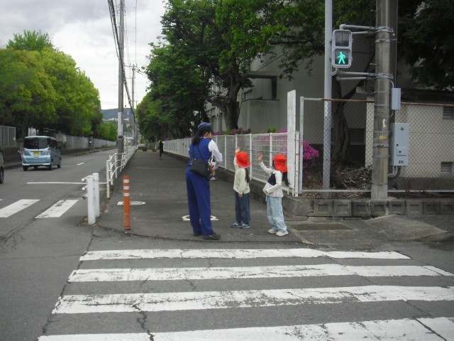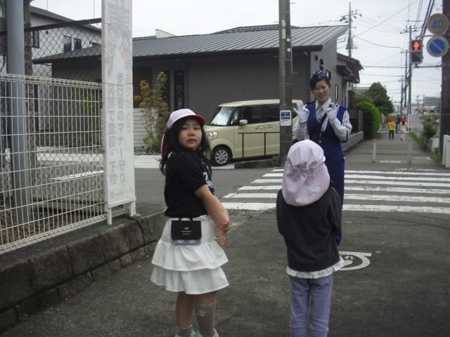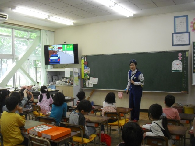 1年生の交通安全教室が行われました。交通指導員の方の指示にしっかり従い、上手に歩くことができました。