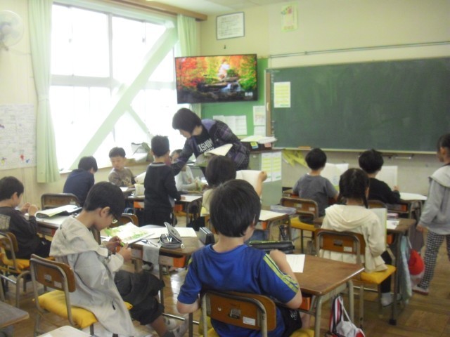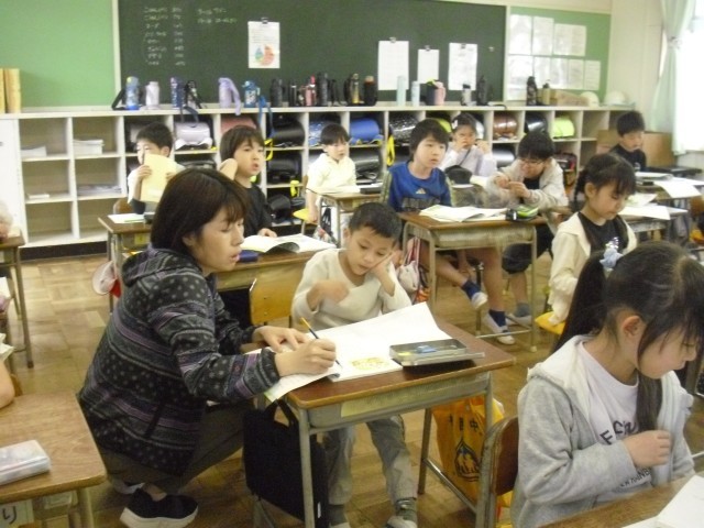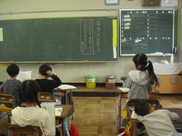 国語の授業です。音読の練習をしています。みんな頑張っています。