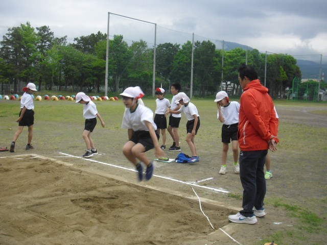 5・6年生の新体力テストが行われました。みんな全力で取り組んでいます。昨年度よりよい記録が出て喜んでいる子もいます。
