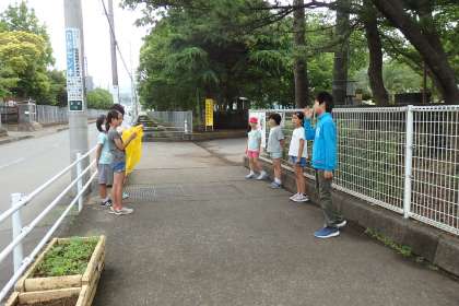 あいさつ当番は3−1と5−1が行っています。ごくろうさま。
