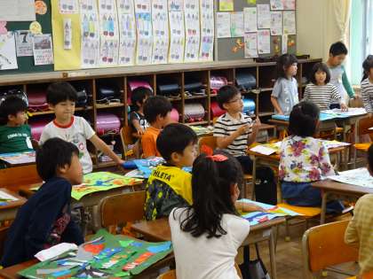 友だちの作品のよいところをみつけています。