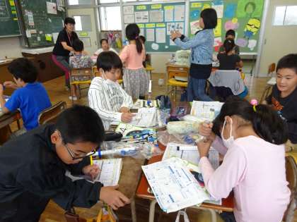 4年2組は理科、「とじこめた空気と水」の授業です。