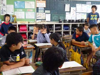 5年2組は学活の授業です。自然教室の振り返りをしています。