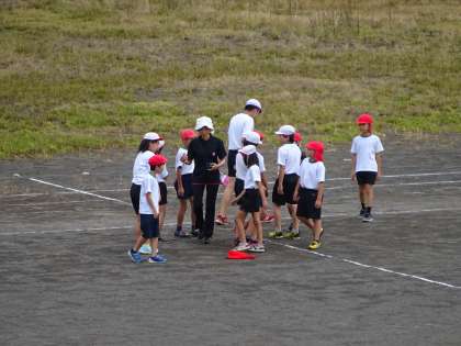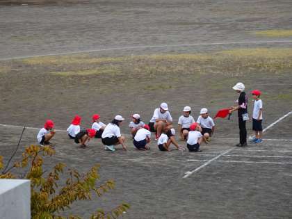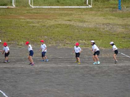 育成学級は体育の授業です。グランドで、50m走や反復横跳びなどの練習をしています。