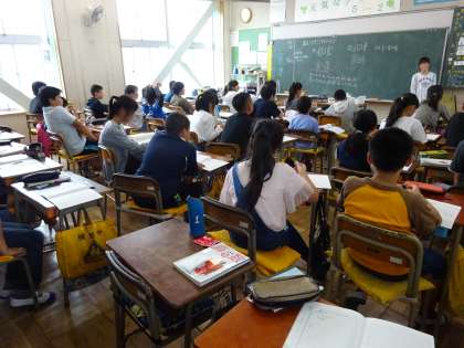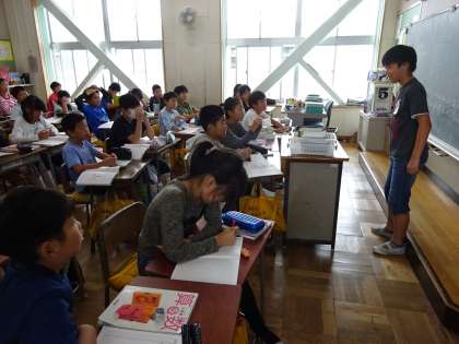 5年2組は算数、「分数の足し算と引き算」の授業です。