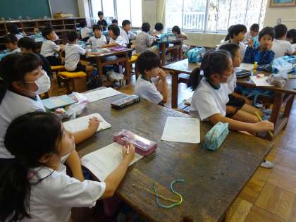3年2組は図工、「トントンドンドンくぎ打ち名人」の授業です。