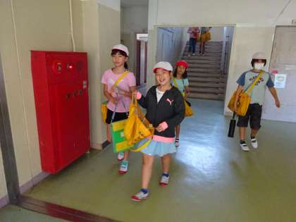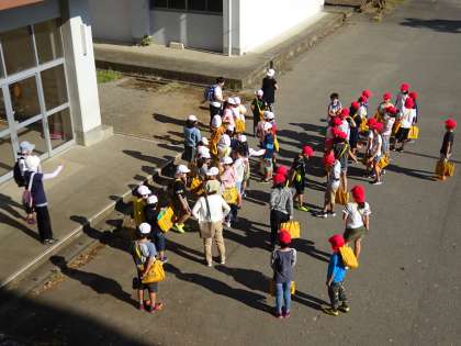 4年生は社会科見学に出発です。今日は消防署を見学します。きをつけていってらっしゃい。