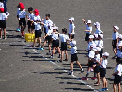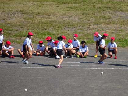 各学年ごと、ボール投げや反復横跳びなど、さまざまな運動に取り組んでいます。