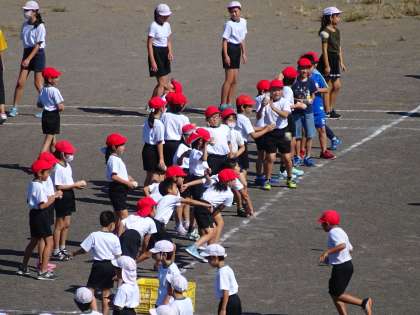 今日は運動日課で、業間休みの時間に全校で運動を行いました。