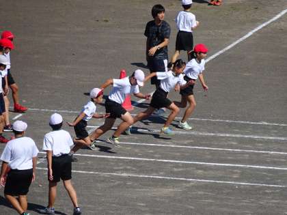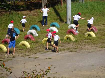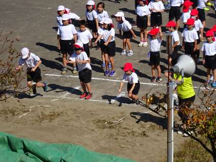 各学年ごと、50m走や立ち幅跳びなど、さまざまな運動に取り組んでいます。