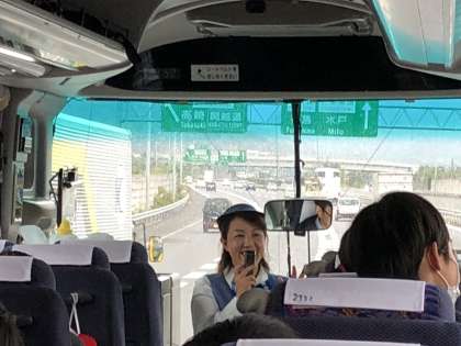 バスは東北道を移動しています。栃木県に入っています。バスガイドさんが、通る土地にちなんだいろいろな話をしてくれます。