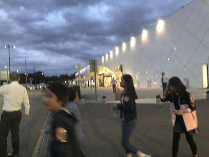 海老名サービスエリアで、パンとジュースを積み込みました。だんだん修学旅行も、終わりに近づいてきてしまいましたね。