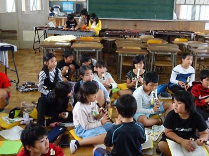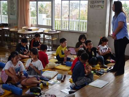 4年生は合同で音楽の授業です。「星に願いを」を演奏できるように、練習しています。
