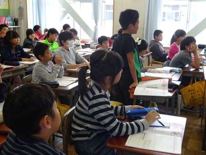 5年2組は家庭科、「身の回りをかたづけよう」の授業です。