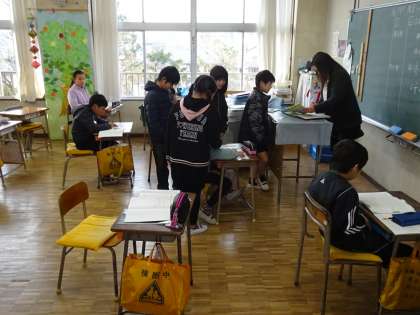 4年2組はグランドで体育の授業です。なわとびに取り組んでいます。
