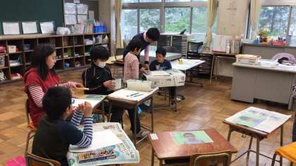 育成学級の授業のようす 公開日 2019/04/10 更新日 2019/04/10 学校のようす 育成学級では、クレパスと絵の具を使って自分の顔の絵を描きました。 写真や鏡を見ながら丁寧に線を描いたり、色を塗ったりしました。 いいね(0)