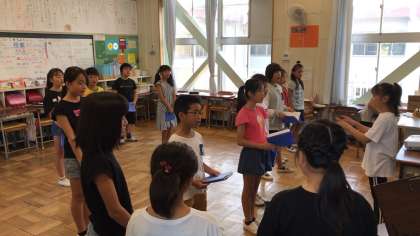 2組では、自然教室で歌う歌を練習しました。