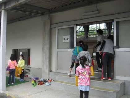 今日はまず、3年生が登校してきました。3密を避けるため、体育館に集まります。