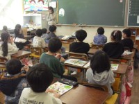 1年生は図工の時間です。水彩絵の具を使い、おいしそうなぶどうができあがってきました。