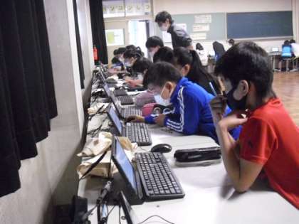 1組は英語です。「Prefecture Quiz. Where is it?」。2組は家庭科です。調理実習のまとめをしています。
