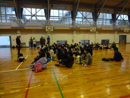 雨のため、体育館に集合しました。