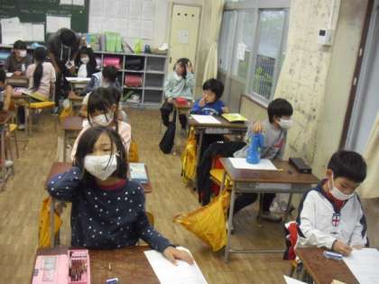 5時間目の学活のようすです。1組は、ハロウインパーティーの計画を立てています。2組は、校外学習のまとめを行いました。