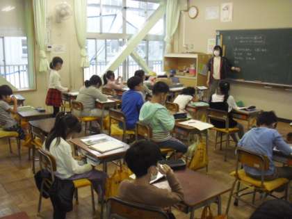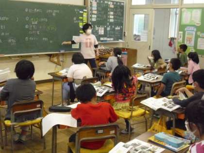5時間目の社会のようすです。校外学習で見学する予定の、ひもの工場について学習しています。