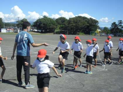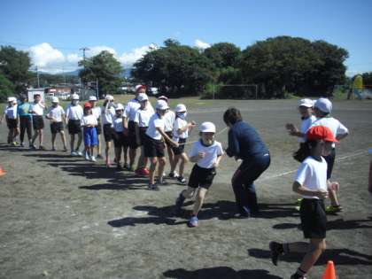 体育の時間のようすです。運動会の種目の練習に取り組んでいます。
