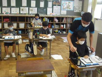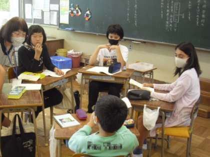 育成1組に6年生が集まり、先週の金曜日に出かけた修学旅行の振り返りをしています。