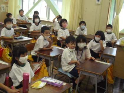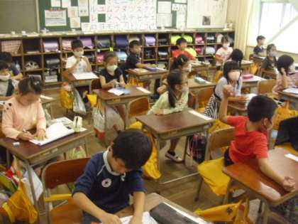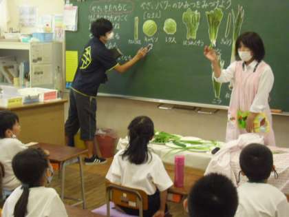 1組は算数のテスト直しをおこないました。2組は食育で、「やさいパワーのひみつをみつけよう」です。