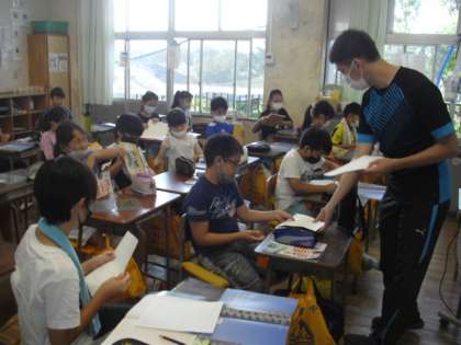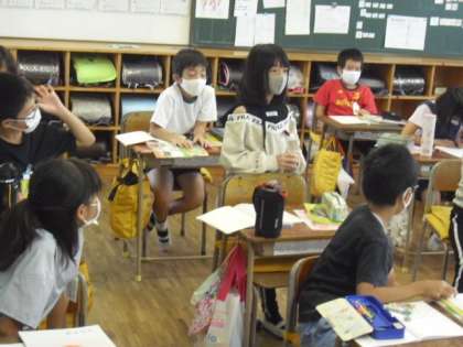 1組は社会です。自然災害への備えについて考えています。2組は理科です。月はどのように動くのでしょうか?