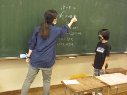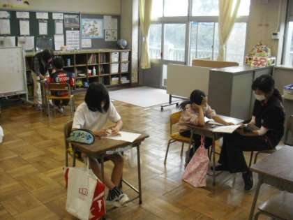 育成1・2組では、国語や算数の学習に取り組んでいます。育成3・4組の子どもたちは図書館に出かけ、教員による読み聞かせをしています。