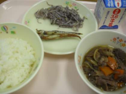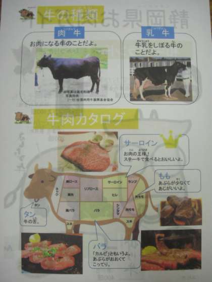 先月のチンジャオロースに続いて、今月の県内産和牛使用献立は「牛丼」です。今回も「しずおか和牛」という銘柄の黒毛和牛です。ところで、牛の体重はとても重く、小学1年生30人分ほどの重さがあります。今沢小1年生1クラス分よりも、牛1頭分の体重の方が重いのです。