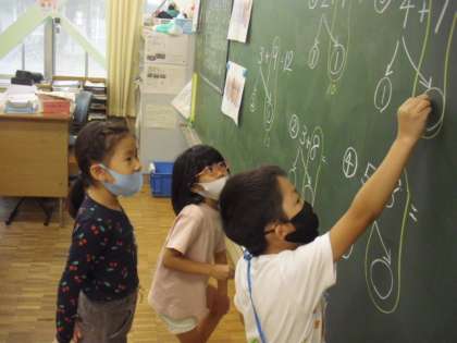 1年生の算数の授業です。くり上がりのある足し算の学習です。