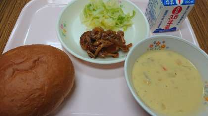 ハンバーグは、ドイツのハンブルグ地方の人たちがひき肉やたまねぎを混ぜて焼いた「ハンブルグステーキ」が語源だそうです。今日は給食室で作ったデミグラスソースをかけました。