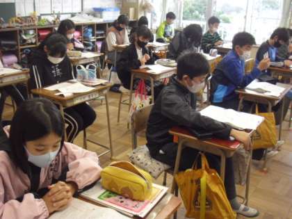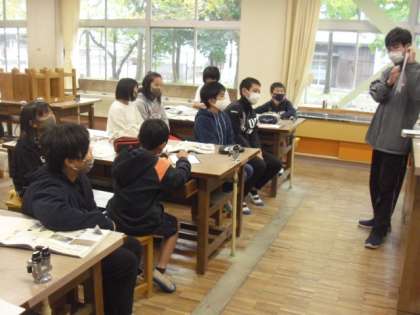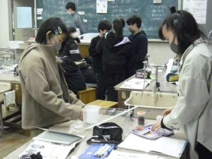 2組は理科です。地層のでき方についての実験に取り組んでいます。