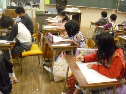 1組は図工です。「やってみたいな、いきたいな」。みんなの夢の世界はどんなでしょうか。